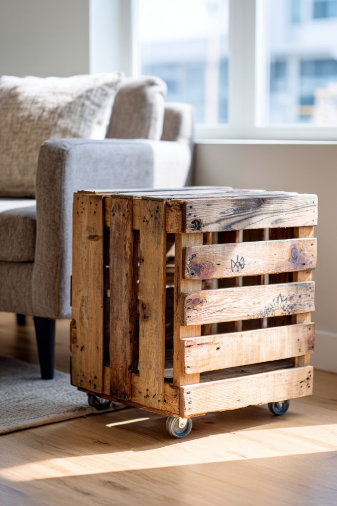 Need a flexible, eco-friendly solution for your living space? A reclaimed pallet wood side table with casters offers mobility, sustainability, and style all in one. It’s perfect for those who want to repurpose and reduce waste while keeping their decor fresh. Plus, the casters make rearranging a breeze, ideal for dynamic spaces or outdoor patios. Who says eco can’t be chic?